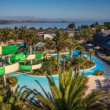 Fragen Sie unsere Gäste, was sie am meisten vermissen, wenn sie wieder zu Hause sind – der Wasserpark steht immer ganz oben auf der Liste. Das Camping Les Mouettes verfügt über eine großzügige Aqua-Anlage mit mehreren beheizten Schwimmbecken, darunter ein großes überdachtes Hallenbad, das Badespaß auch bei typisch bretonischem Wetter garantiert. Wasserrutschen für die Kleinen, ein Strömungsfluss für alle, flache Planschbecken für die Allerkleinsten – der Wasserpark ist so konzipiert, dass er vom Morgen bis zum frühen Abend lebt und jede Altersgruppe abholt.
