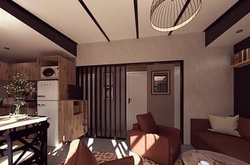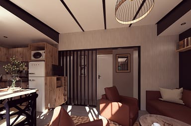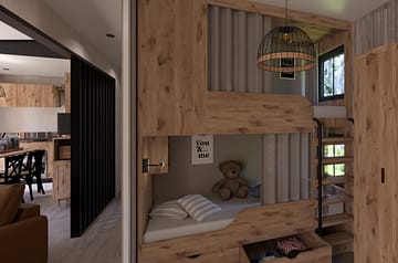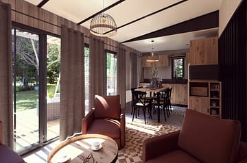 Spacieux et chaleureux, ce lodge de 50 m² accueille jusqu’à 6 personnes dans un cadre pensé pour allier confort et élégance. Son agencement moderne offre une suite parentale avec salle de bain privative, deux chambres pensées pour les enfants, ainsi qu’un séjour lumineux. La cuisine ouverte et la grande terrasse semi-couverte prolongent les moments partagés, que ce soit autour d’un repas en famille ou d’une pause détente à l’extérieur. Ici, chaque détail a été pensé pour créer un lieu chaleureux, idéal pour des vacances en Bretagne entre nature et confort.